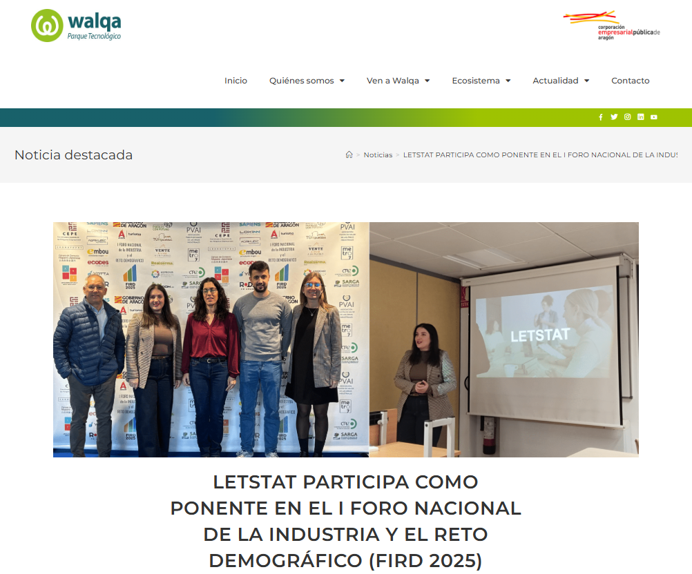 • Gobierno de Aragón; Diario del Alto Aragón; Parque Tecnológico Walqa (19 de septiembre de 2025): Encuentro Empresa-Universidad 2025 en Walqa [Letstat participa en la mesa redonda: Los medios para la puesta en valor de los datos]